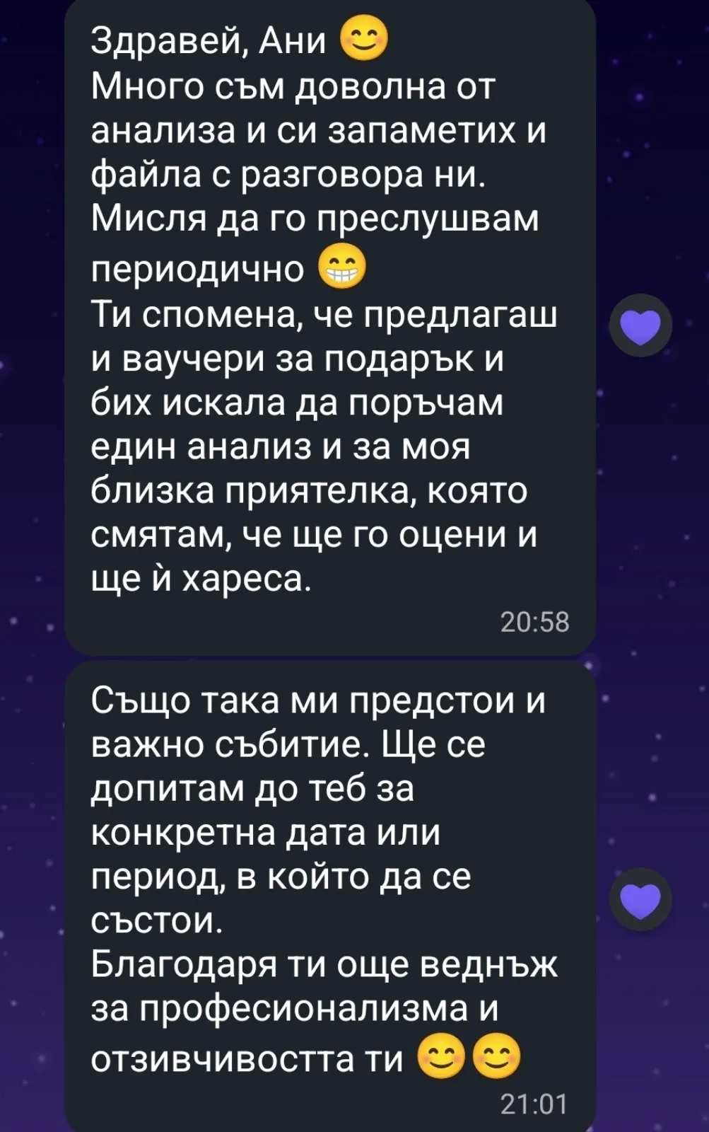 Имам вече над 10 години опит в астропсихологията и прогностиката. Помагам на хората да разберат своя път, взаимоотношенията си и бъдещето си чрез прецизни астрологични изчисления.
